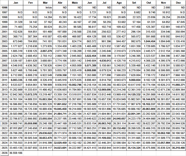 Até março de 2000 os números são do contador de acessos publicados no Golfinho Impresso.
